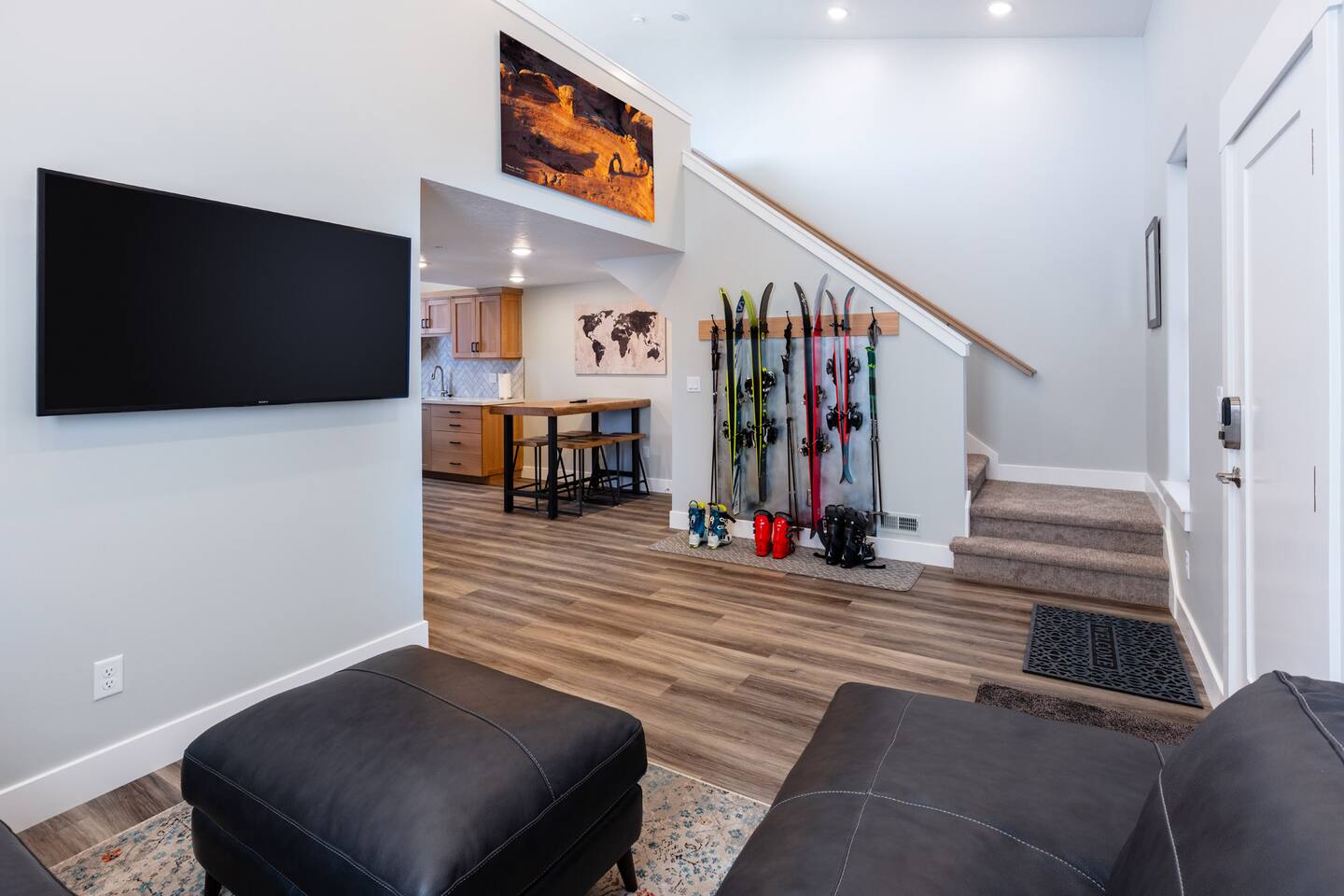 Location, location, location! Two minutes to Big Cottonwood Canyon, nine to Little Cottonwood! This new, cozy but comfortable 2 bedroom apartment sleeps 4. Open floor plan, full-sized kitchen, super fast WiFi. Private entrance with self check in. One parking space, UTA ski bus stop in front. Convenient access off of I-215. 20-30 minutes to the airport or downtown Salt Lake City. 35 minutes to Park City. Tons of great restaurants nearby. Perfect home base for your ski vacation!