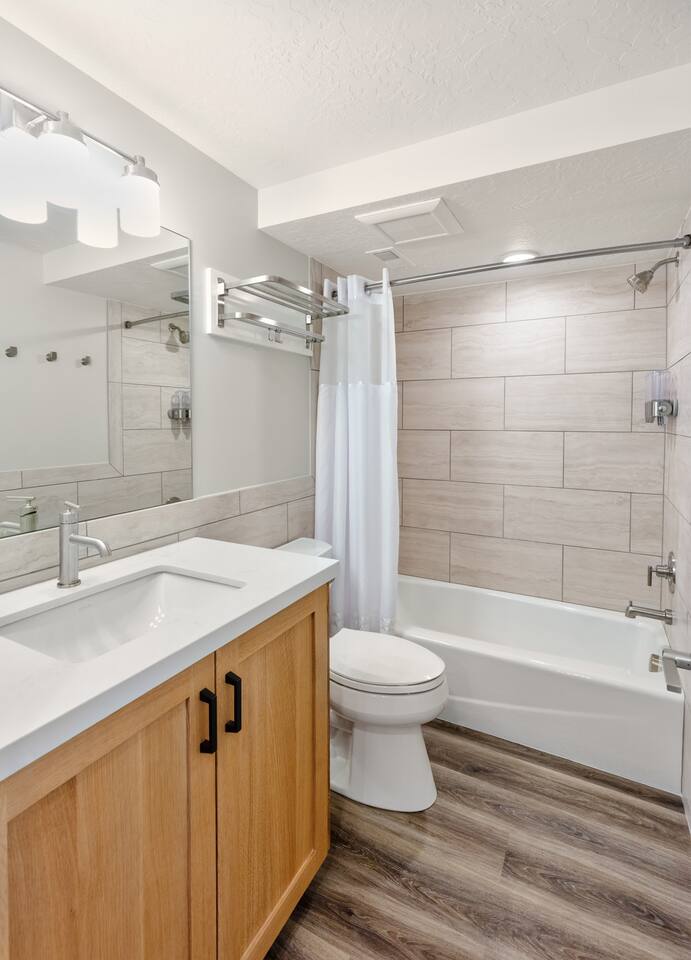 Location, location, location! This cozy two-bedroom unit (Apt #1) is part of a small (7 unit) apartment complex. It is fully decked out for your ski (or other) vacation! The location can't be beat- it is just off of I-215 and is only 2 minutes by car (1.1 miles) to the mouth of Big Cottonwood Canyon. If Little Cottonwood is your destination, you are only 5 miles from the mouth of the canyon. Park City is easily accessible by hopping on I-215. A parking space is available for your use. Don't have a car? The UTA ski bus to Big and Little Cottonwood Canyons literally stops outside your door. This apartment is newly renovated with beautiful finishes and a full kitchen. Much thought has gone into providing everything you will need for a relaxing and enjoyable stay. Everything is clean and new. Two bedrooms with comfortable queen beds will help you rest up for your next day's adventure. If you need a crib, the unit is stocked with a Graco Pack n' Play. The living room has a comfortable sectional with a TV setup with Roku for your entertainment, as does the main level bedroom. There is high-speed Wifi included for your technology needs. If you would like to cook your own meals, we have a fully set-up kitchen for you with oven, dishwasher, full-sized fridge/freezer and microwave as well as all the miscellaneous kitchen tools you will need. We have a Keurig coffee maker with an assortment of coffees and cocoa. If you prefer to eat out, there are many excellent restaurants nearby (Porcupine Pub and Grill is one of our favorites)! Cable TV is not available, but each of the 55" TVs is setup with Roku Guest access which will allow you to sign into your personal streaming accounts (including Netflix, Amazon video, Hulu, Youtube TV, etc) and will automatically log you out the day you leave. You will stay comfortable with a thermostat you control- air conditioning in the summer and heat in the winter. Staying a while and need to wash your clothes? We have you covered- this apartment has a full-sized washer and dryer for your use, as well as an ironing board with iron. We even have a wall-mounted ski rack to conveniently store your skis and poles. If you need a secure place to lock things up, there is a safe as well. We highly value cleanliness, so each unit is thoroughly cleaned between guests. We set up our bedding so that the entire duvet cover and coordinated pillowcases will be washed between every guest, in addition to sheets and towels, so that no surface is shared. We have six other 2-bedroom units available in this complex if you are traveling with family or friends and would like to stay together. This unit is not available to rent as student housing or seasonal employee housing.