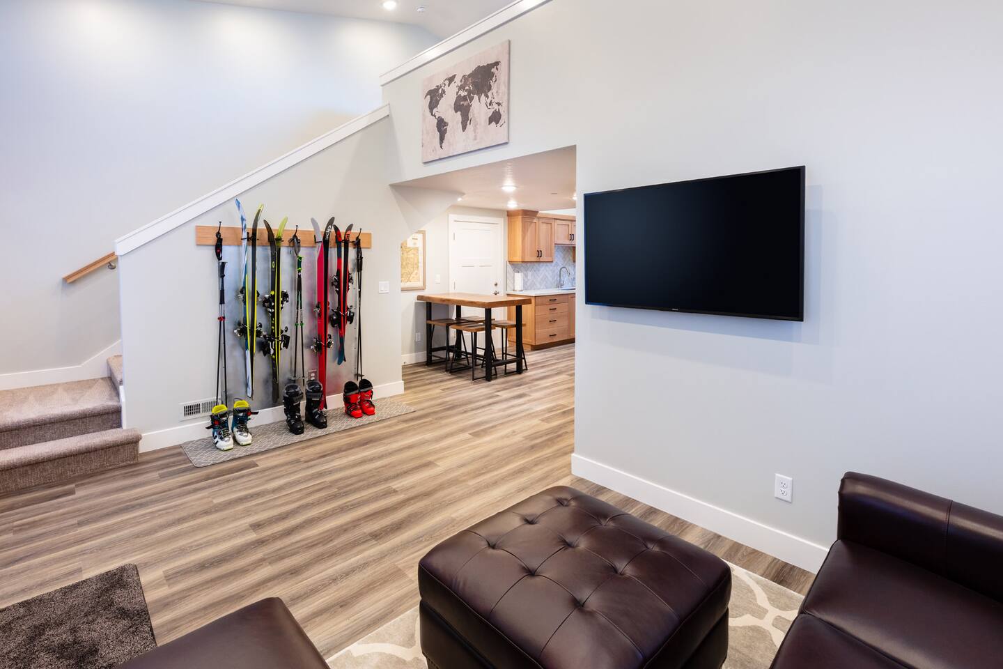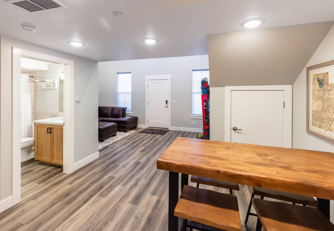Location, location, location! This cozy two-bedroom unit, Apt #2, is part of a small (7 unit) apartment complex. It is fully decked out for your ski (or other) vacation! The location can't be beat- it is just off of I-215 and is only 2 minutes by car (1.1 miles) to the mouth of Big Cottonwood Canyon. If Little Cottonwood is your destination, you are only 5 miles from the mouth of the canyon. Park City is easily accessible by hopping on I-215. Two parking spaces are available for your use. Don't have a car? The UTA ski bus to Big and Little Cottonwood Canyons literally stops outside your door. This apartment is newly renovated with beautiful finishes and a full kitchen. Much thought has gone into providing everything you will need for a relaxing and enjoyable stay. Two bedrooms with comfortable queen beds will help you rest up for your next day's adventure. If you need a crib, the unit is stocked with a Graco Pack n' Play. The living room has a comfortable sectional with a TV setup with Roku for your entertainment, as does the main level bedroom. There is high-speed Wifi included for your technology needs. If you would like to cook your own meals, we have a fully set-up kitchen for you with oven, dishwasher, full-sized fridge/freezer and microwave as well as all the miscellaneous kitchen tools you will need. We have a Keurig coffee maker with an assortment of coffees and cocoa. If you prefer to eat out, there are many excellent restaurants nearby (Porcupine Pub and Grill is one of our favorites!) Cable TV is not available, but each of the 55" TVs is setup with Roku Guest access which will allow you to sign into your personal streaming accounts (including Netflix, Amazon video, Hulu, Youtube TV, etc) and will automatically log you out the day you leave. You will stay comfortable with a thermostat you control- air conditioning in the summer and heat in the winter. Staying a while and need to wash your clothes? We have you covered- this apartment has a full-sized washer and dryer for your use, as well as an ironing board with iron. We even have a wall-mounted ski rack to conveniently store your skis and poles. If you need a secure place to lock things up, there is a safe as well. We highly value cleanliness. Each unit will be thoroughly cleaned between guests. We set up our bedding so that the entire duvet cover and coordinated pillowcases will be washed between every guest, in addition to sheets and towels, so that no surface is shared. We have six other 2-bedroom units available in this complex if you are traveling with family or friends and would like to stay together. This unit is not available to rent as student housing or seasonal employee housing.